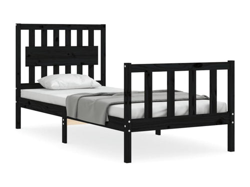 Boisona bed base with black 90x190cm faux leather mattress UAEO49619